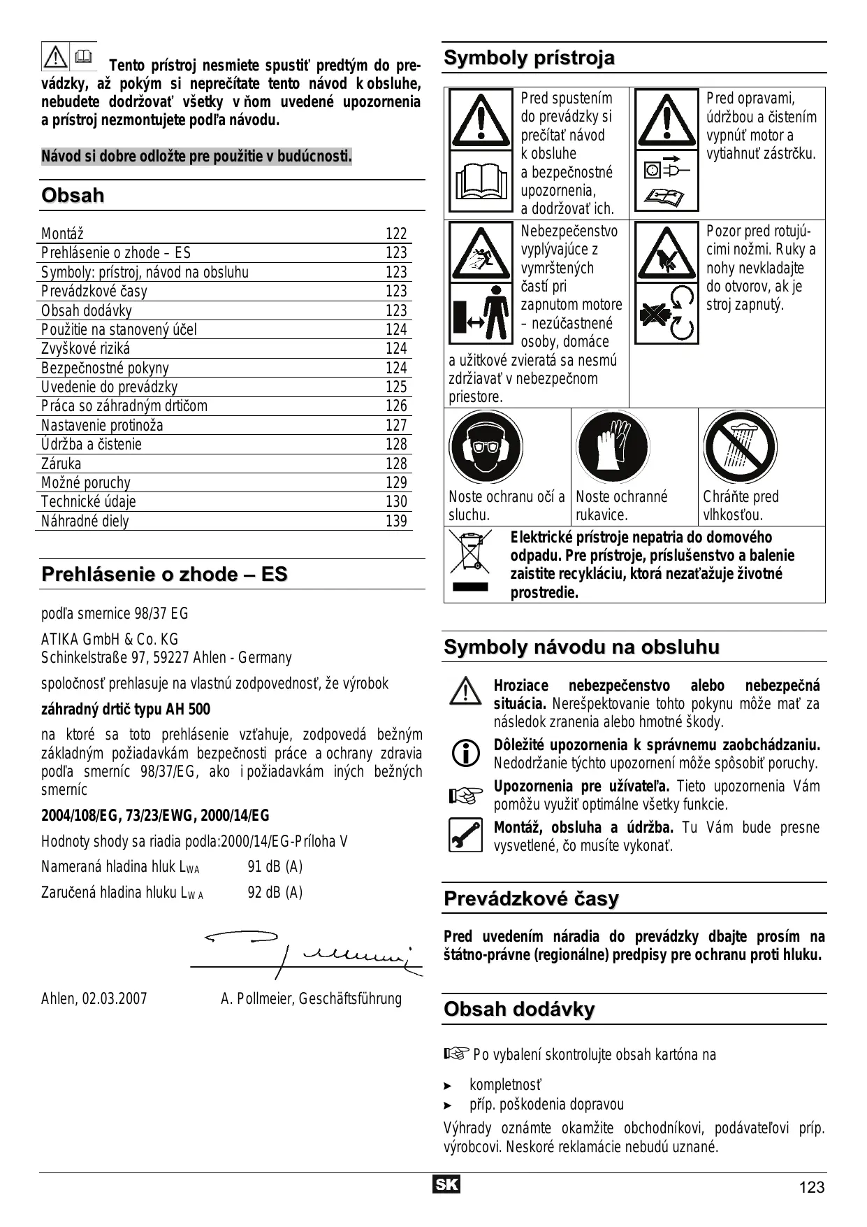 | Symboly: prístroj, námod na obsluhu | 123 |