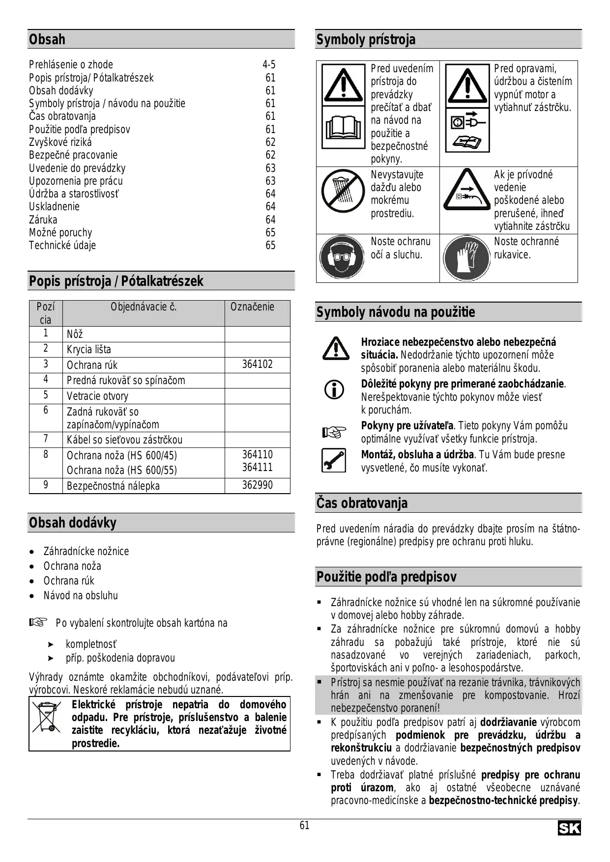 NÁVOD NA OBSLUHU HS 600-45 ATIKA