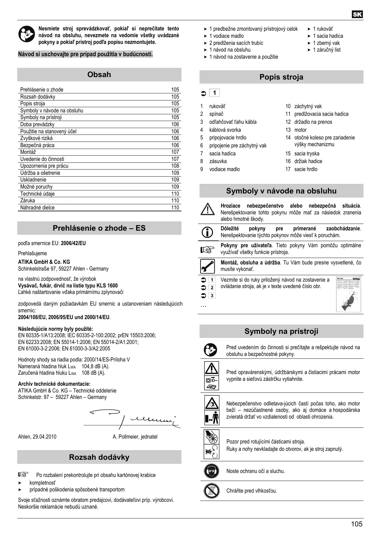 NÁVOD NA OBSLUHU KLS 1600 ATIKA