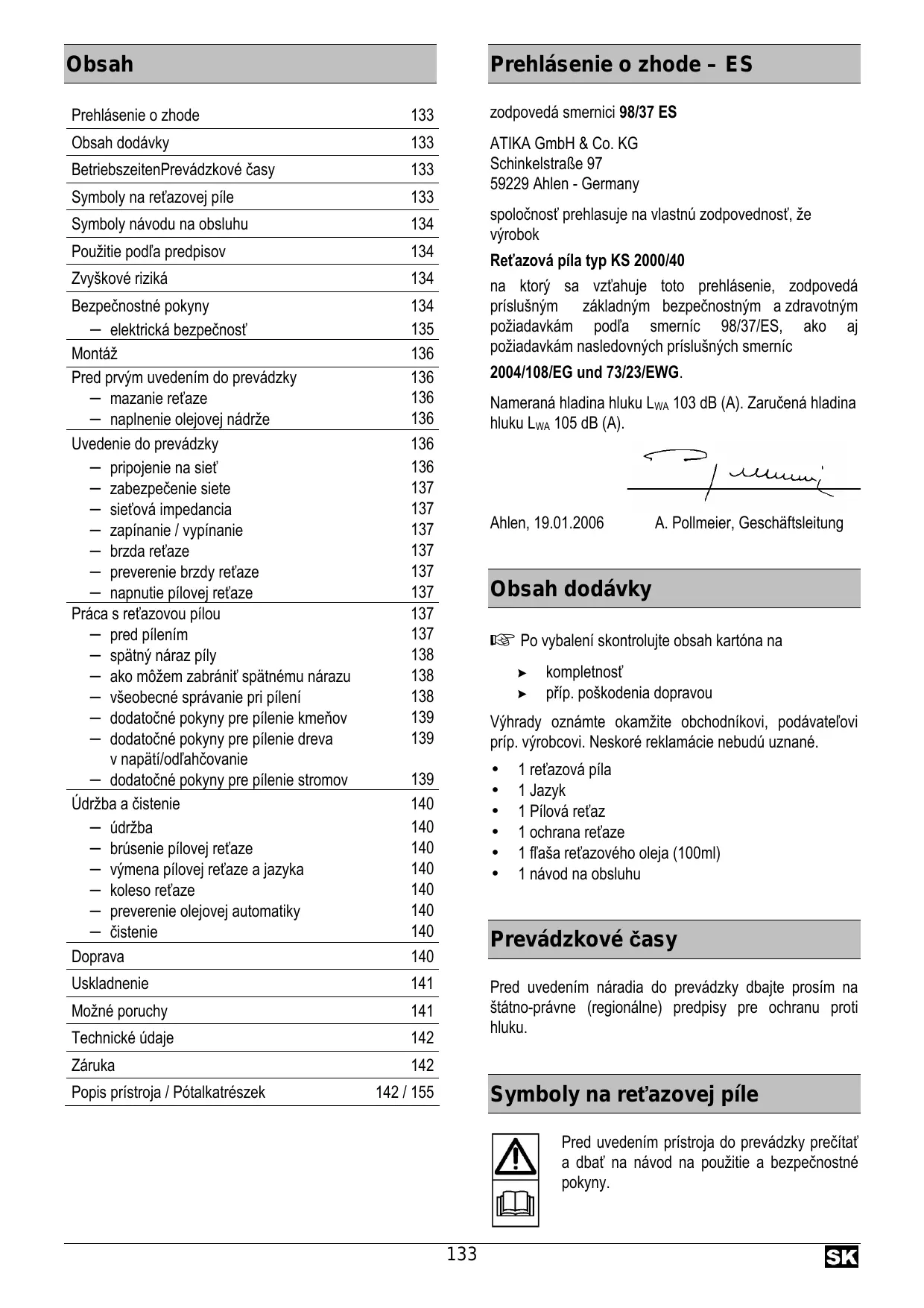 KS 2000-40 - Reťazová píla ATIKA - Bezplatný návod na obsluhu
