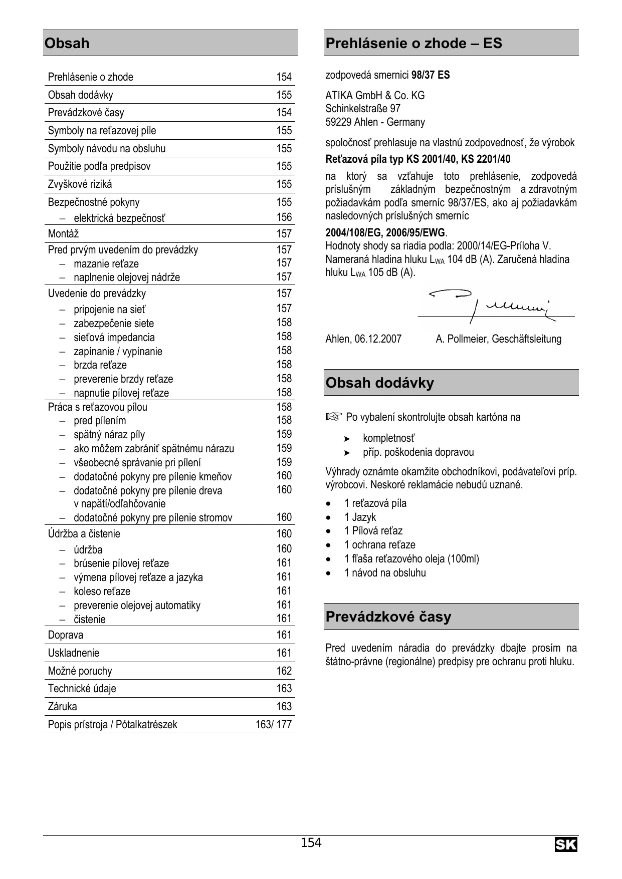 KS 2201 - Reťazová píla ATIKA - Bezplatný návod na obsluhu