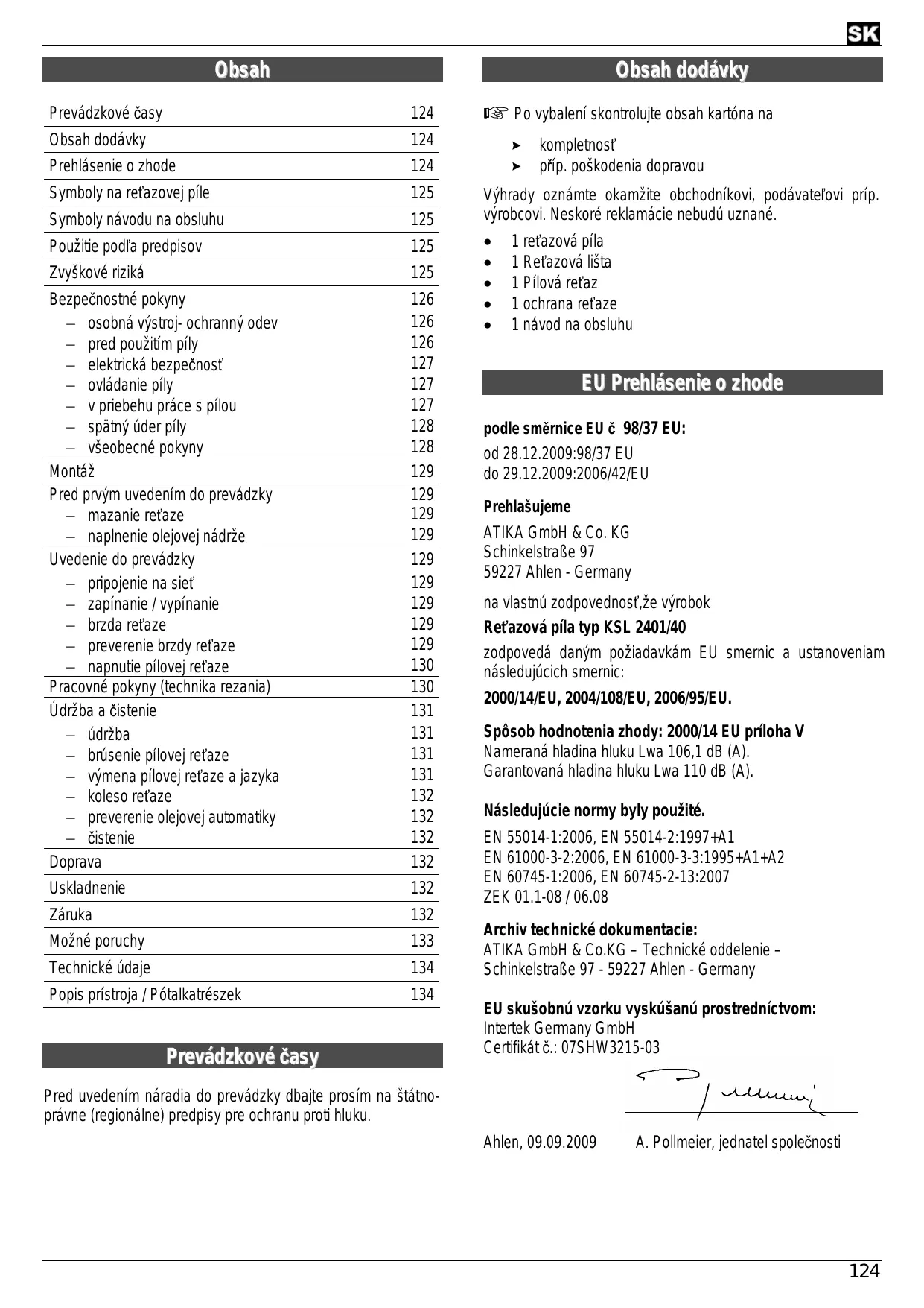 Pred uvedením náradia do prevádzky dbajte prosím na štátnoprávne (regionálne) predpisy pre ochranu proti hluku. Ahlen, 09.09.2009