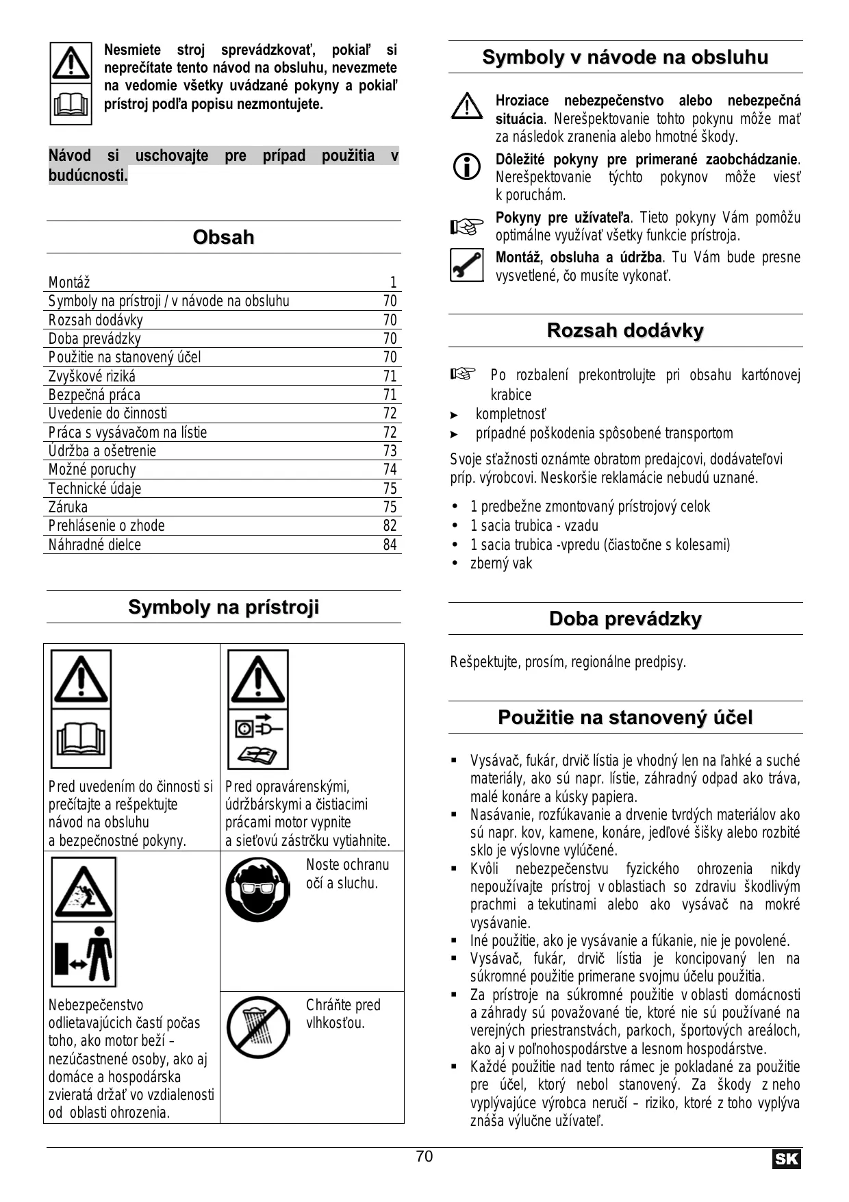 =" lgnorované alebo prehliadané bezpeënostné opatrenia môzu viest k zraneniam obsluhujüceho alebo ku Skodém na majetku.