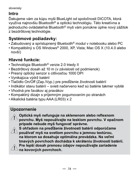 BLUELIGHT - Počítačové príslušenstvo DICOTA - Bezplatný návod na obsluhu