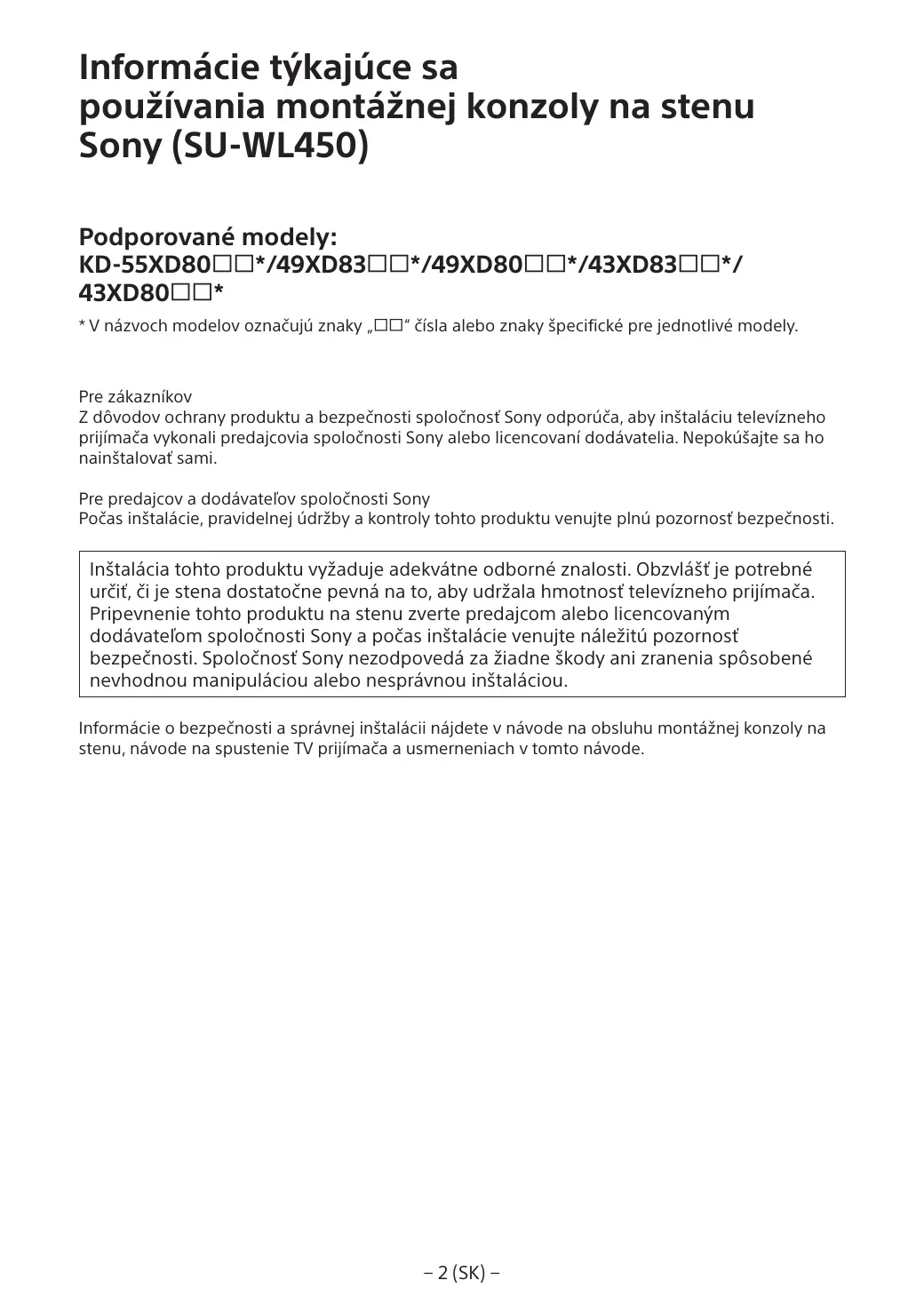 Téléchargez la notice de votre Televízor au format PDF gratuitement ! Retrouvez votre notice KD55X8005 - SONY et reprennez votre appareil électronique en main. Sur cette page sont publiés tous les documents nécessaires à l'utilisation de votre appareil KD55X8005 de la marque SONY.