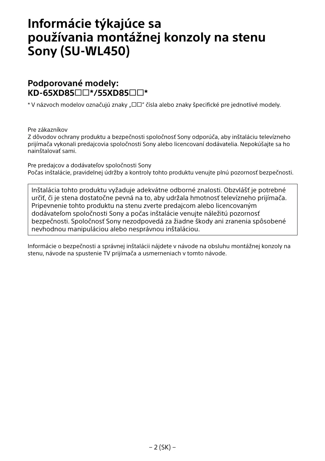 NÁVOD NA OBSLUHU KD65XD8505B SONY