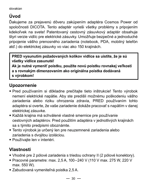 Nájdite návod k zariadeniu zdarma COSMOS POWER DICOTA vo formáte PDF.