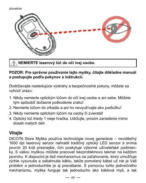 STORE - Počítačová myš DICOTA - Bezplatný návod na obsluhu