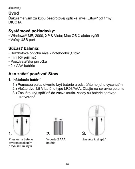 - Na maximalizáciýživotosti batérii použivajte myS na bielom ci svetlom povrchu. Na tmavom povrchu musi svieti dióa (LED) jasnejtie, co sposobuje rychlejsé yvibite batérié.