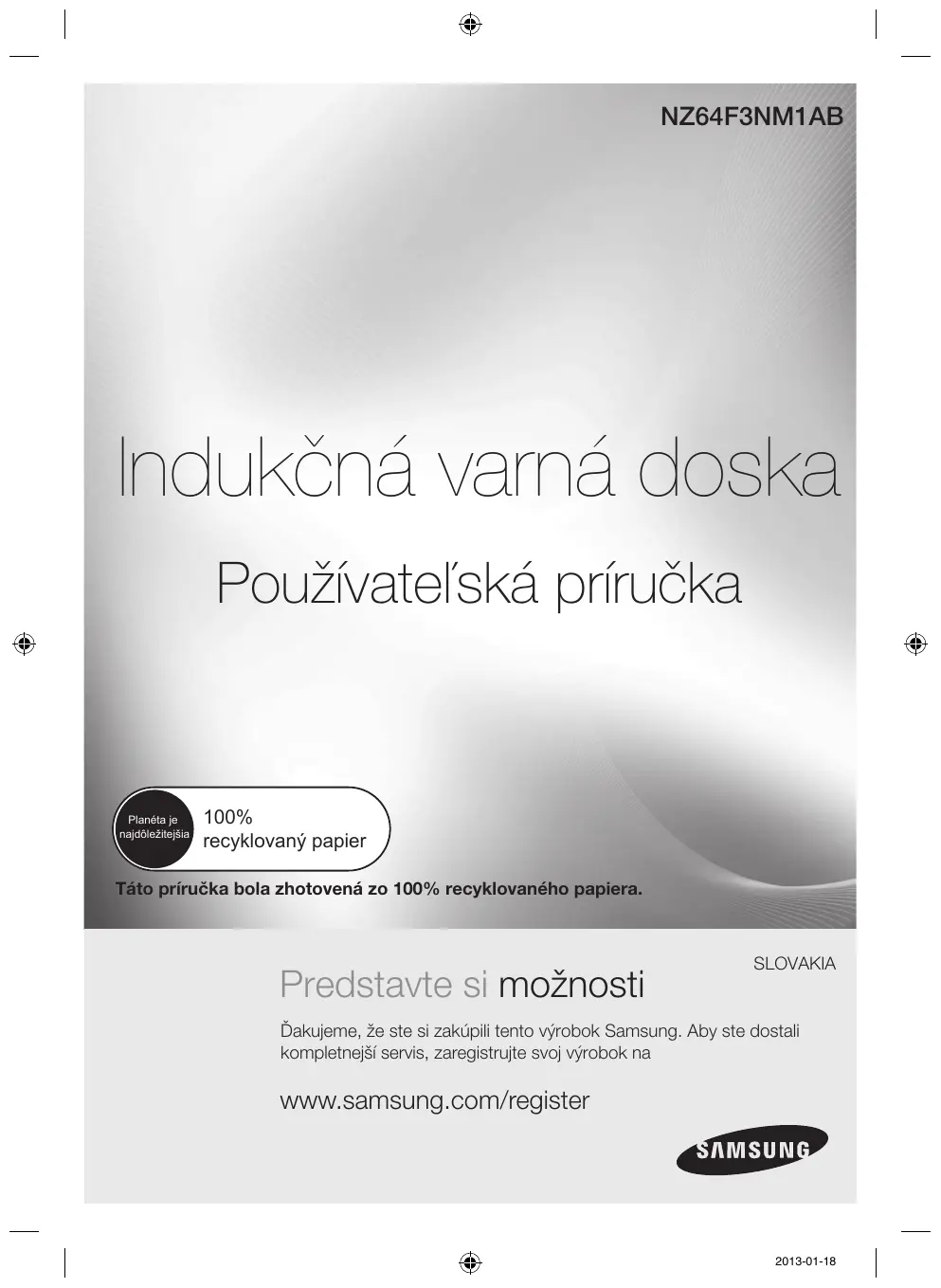 Ďakujeme, že ste si zakúpili tento výrobok Samsung. Aby ste dostali kompletnejší servis, zaregistrujte svoj výrobok na