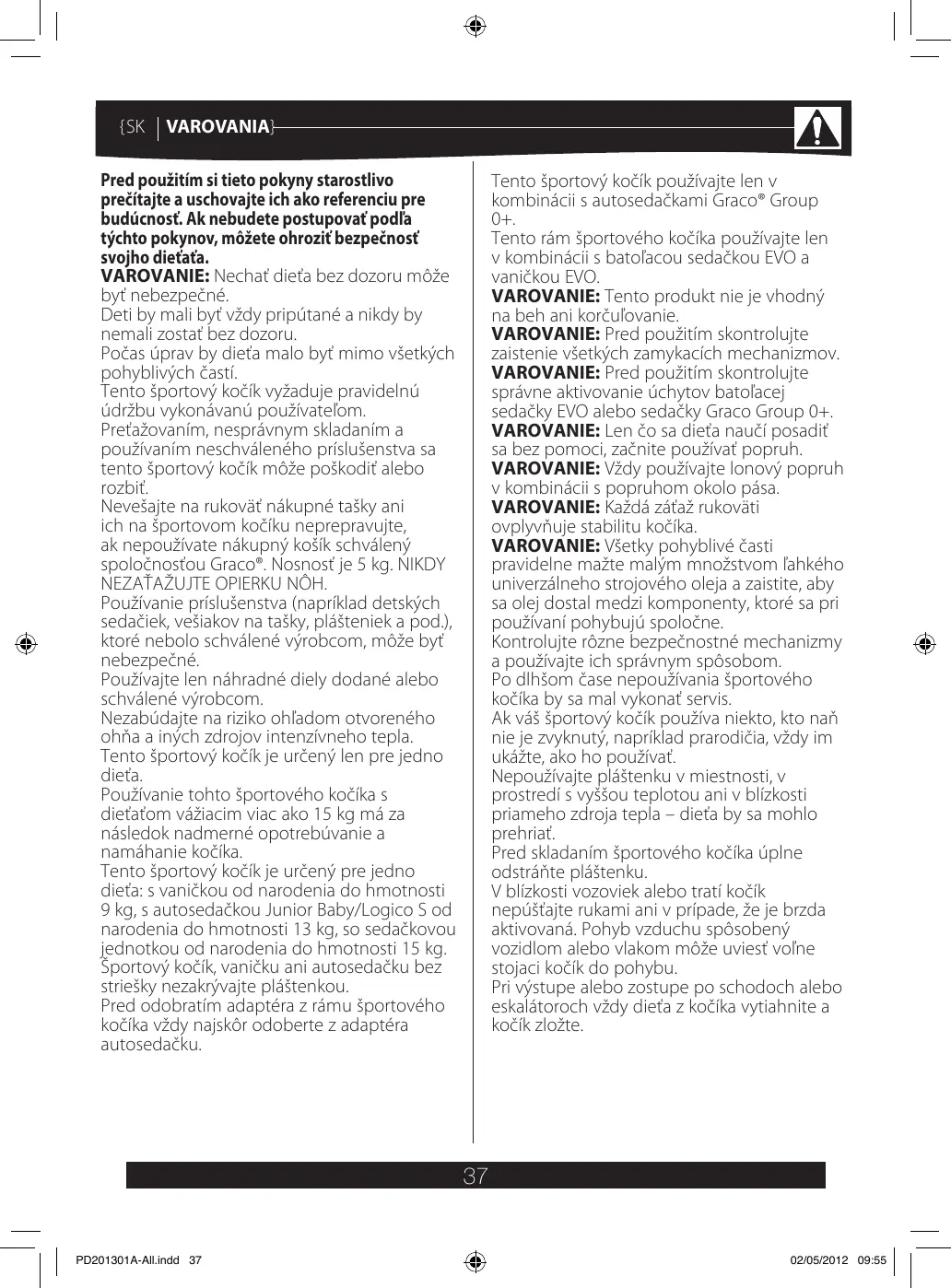 EVO XT - Detský kočík GRACO - Notice d'utilisation et mode d'emploi gratuit
