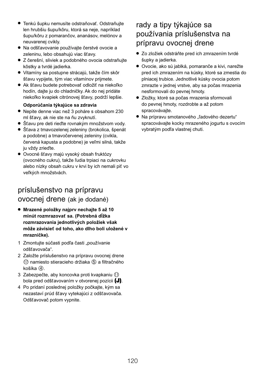rady a tipy týkajúce sa používania príslušenstva na prípravu ovocnej drene