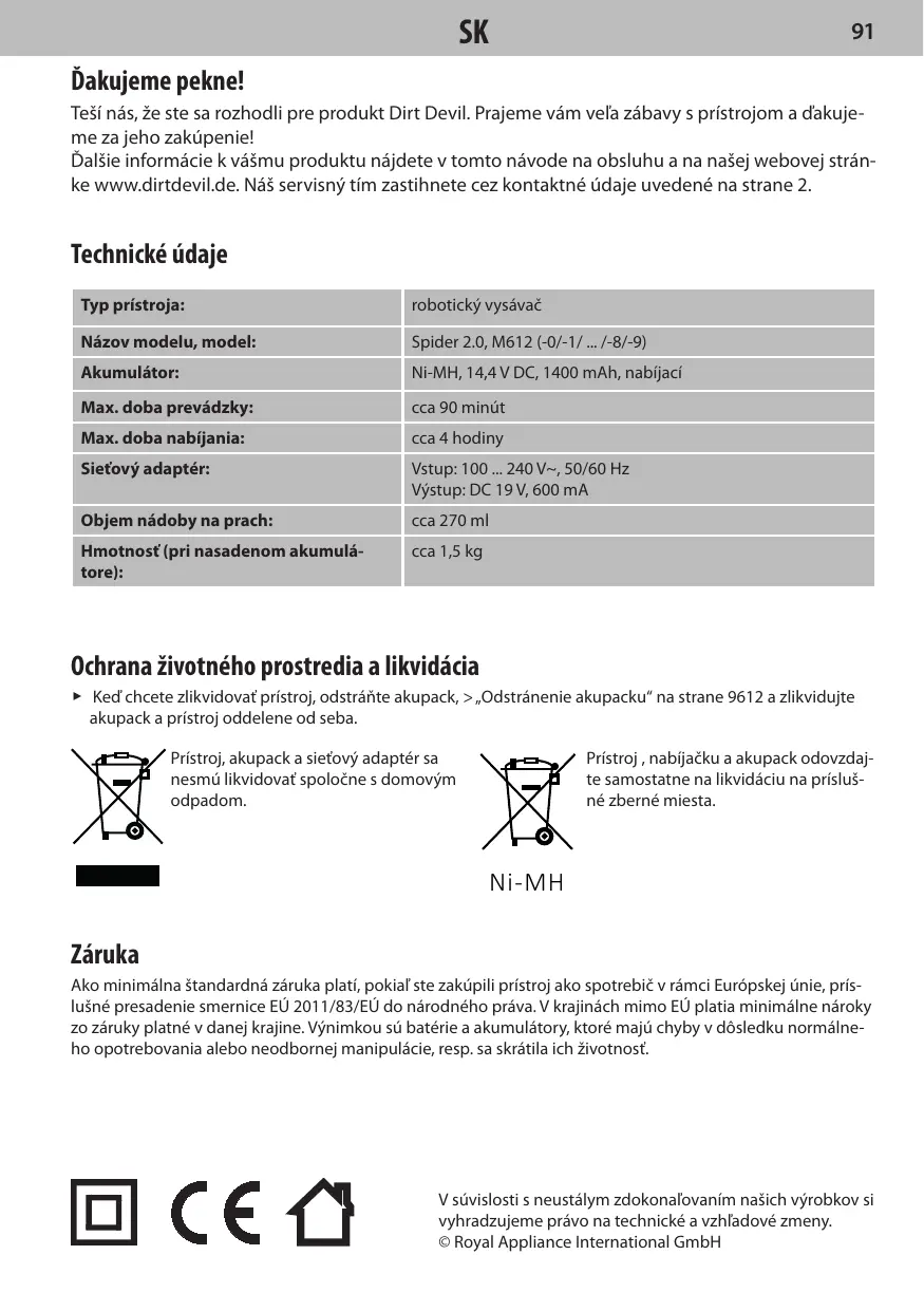 NÁVOD NA OBSLUHU SPIDER 2,0 TRACKER M613 DIRT DEVIL