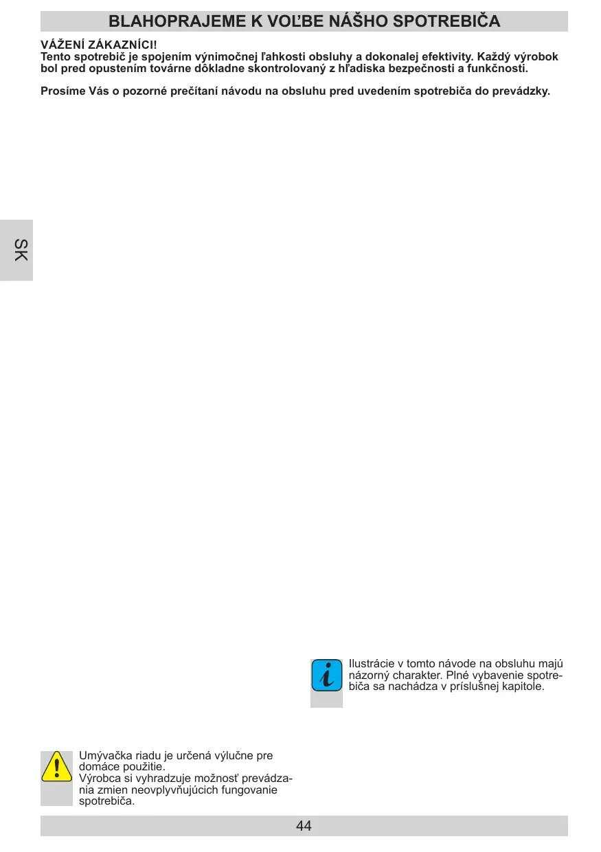 Umyvačka riadu je určená výlucne pre domáce použitie.