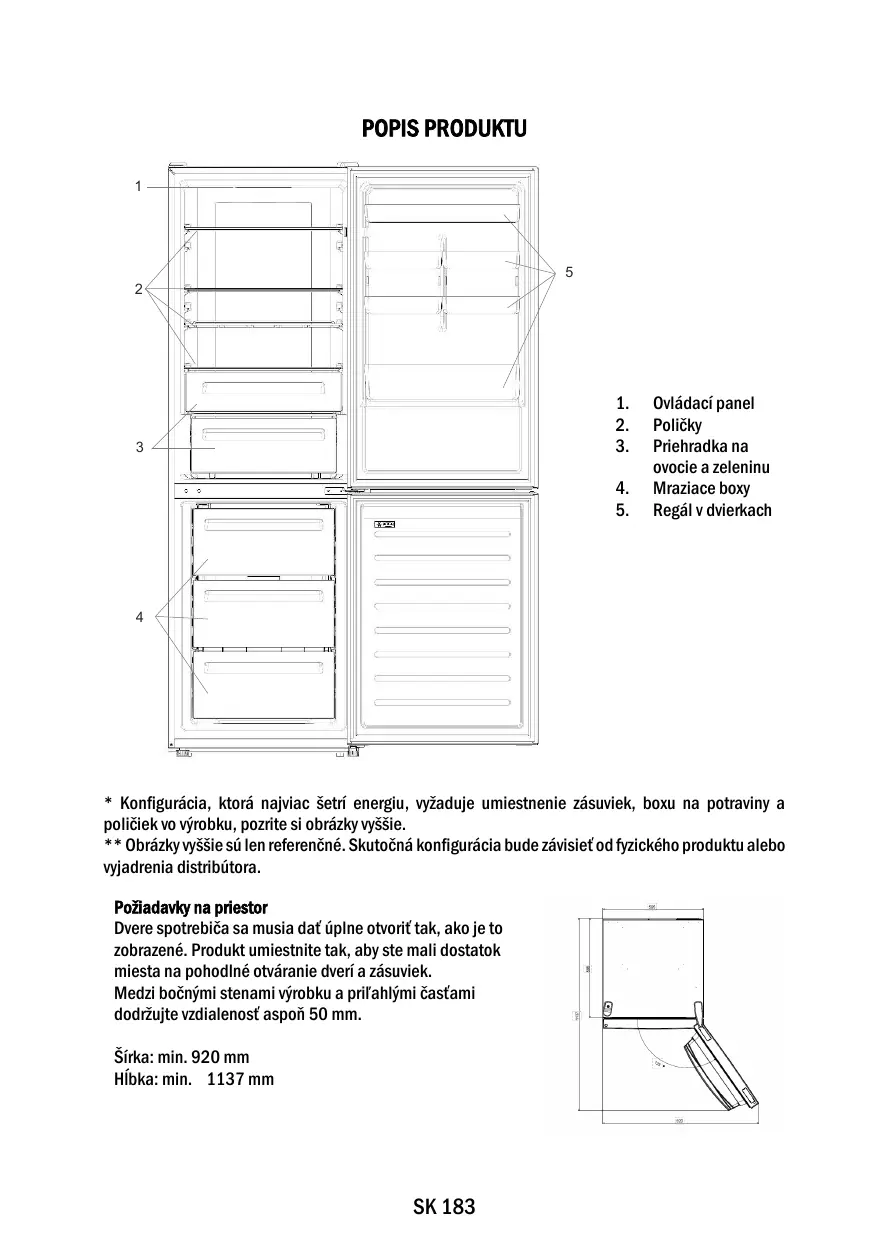 Gardez une distance d'au moins 50 mm entre les parois latérales du produit et les pièces adjacentes. Largeur : min. 920 mm Profondeur : min. 1137 mm