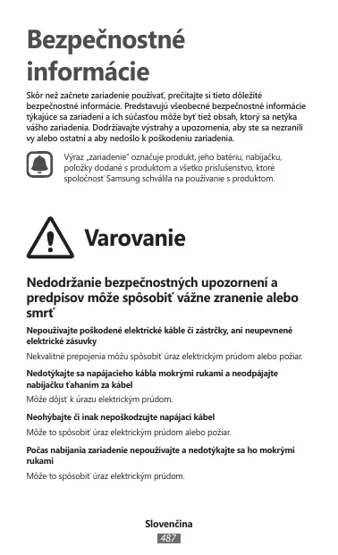 • Évitez d’exposer l’appareil et la batterie à des températures très basses ou très élevées. • Ne soumettez pas l’appareil à des températures extrêmes, car cela peut l’endommager ou réduire la capacité de chargement et la durée de vie de l’appareil et de la batterie. • Évitez que la batterie entrent en contact avec des objets métalliques, car cela risquerait de provoquer un court-circuit entre les bornes + et – de la batterie et de l’endommager de manière temporaire ou permanente. • N’utilisez jamais une batterie ou un chargeur endommagé(e). Ne conservez pas votre appareil à proximité ou à l’intérieur de radiateurs, de fours à micro-ondes, d’équipements de cuisine chauffants ou de conteneurs à haute pression • La batterie peut fuir. • Votre appareil peut surchauffer et causer un incendie. Cet appareil ne doit pas être utilisé ou stocké dans des zones où règne une forte concentration en poussières ou microparticules en suspension La poussière ou les microparticules peuvent provoquer des dysfonctionnements de l’appareil et entraîner des incendies ou des décharges électriques. Le connecteur à fonctions multiples et la petite extrémité du chargeur ne doivent jamais entrer en contact avec des matériaux conducteurs, tels que liquides, poussière, poudres métalliques et mines de crayon Les matériaux conducteurs peuvent provoquer un court-circuit ou corroder les bornes et entraîner une explosion ou un incendie. Ne mordez et ne portez pas à la bouche l’appareil ou la batterie • Vous risquez d’endommager l’appareil ou de provoquer une explosion ou un incendie. • Surveillez les enfants ou les animaux qui pourraient s’étrangler avec des pièces de dimension réduite. • Assurez-vous que les enfants manipulent l’appareil de façon appropriée s’ils doivent l’utiliser.