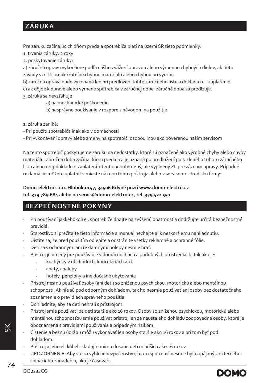 NÁVOD NA OBSLUHU DO2332CG DOMO