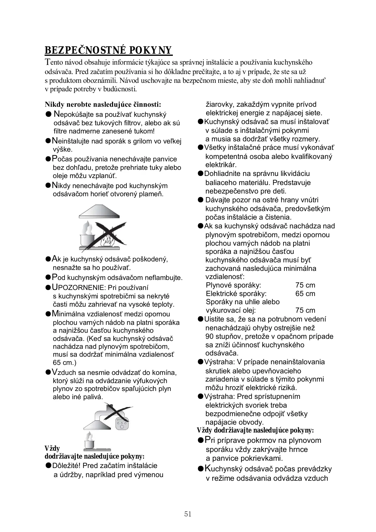 ●Les réglementations relatives à l’évacuation de l’air doivent être respectées. ●Nettoyez régulièrement votre appareil en suivant la méthode fournie dans le chapitre ENTRETIEN. ●Pour des raisons de sécurité, veuillez n’utiliser que des vis de fixation ou de montage de la même taille que celle recommandée dans ce manuel d’instruction. ●En ce qui concerne les détails sur la méthode et la fréquence de nettoyage, veuillez vous reporter au paragraphe relatif à l’entretien et au nettoyage dans le manuel d’instruction. ●Le nettoyage et l’entretien ne doivent pas être effectués par des enfants sans surveillance. ●Quand la hotte aspirante et les appareils alimentés par autre chose que de l’électricité fonctionnent simultanément, la pression négative à l’intérieur de la pièce ne doit pas dépasser 4 Pa (4 x 10-5 bar). ●AVERTISSEMENT : Risque d’incendie : ne rangez pas des objets sur les surfaces de cuisson. ●Il ne faut pas utiliser de nettoyeur vapeur. ●Ne tentez JAMAIS d’éteindre un incendie avec de l’eau, mais éteignez l’appareil puis couvrez la flamme par exemple avec un couvercle ou une couverture pareflammes.