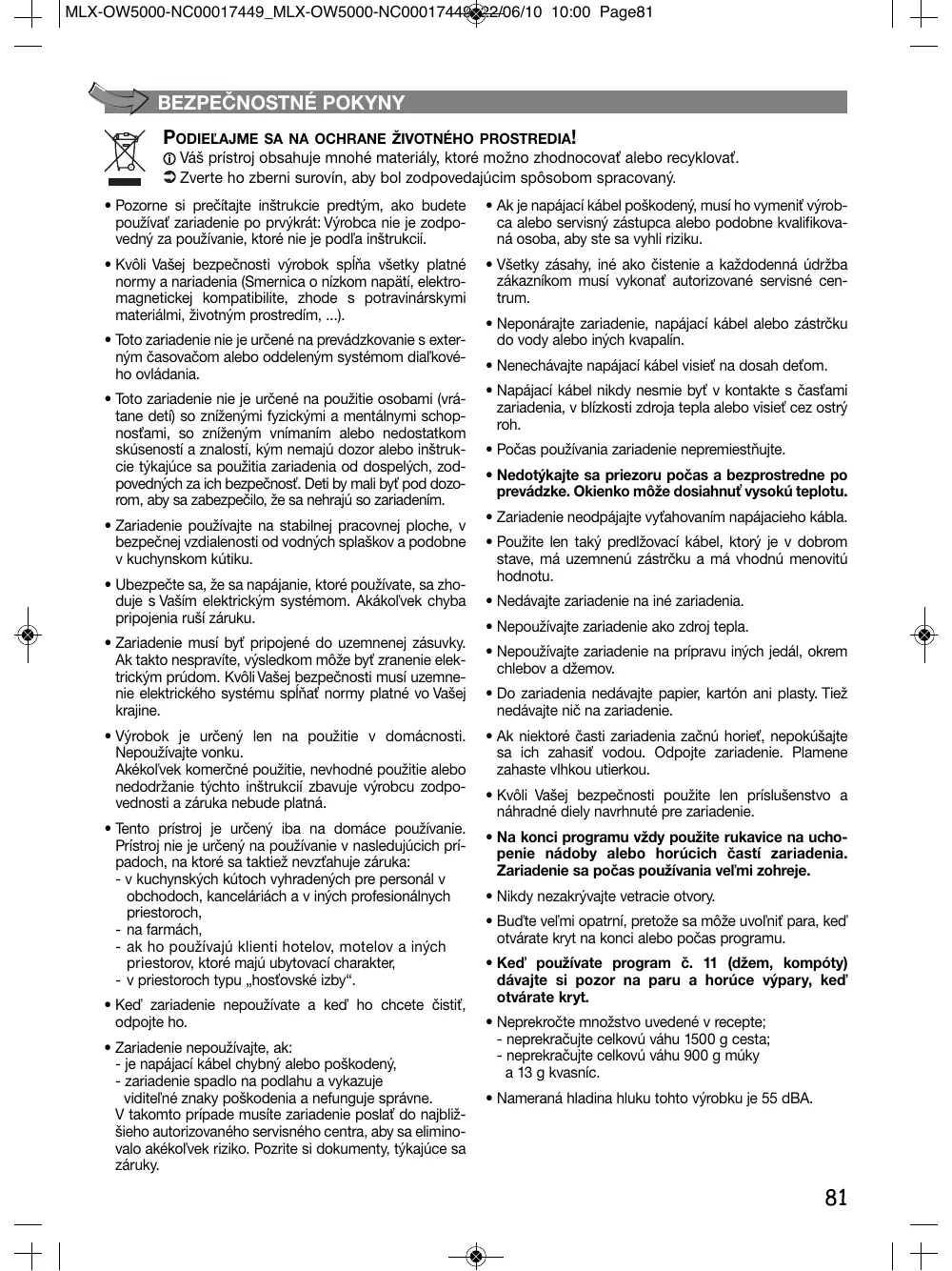 NÁVOD NA OBSLUHU OW 5006 MOULINEX