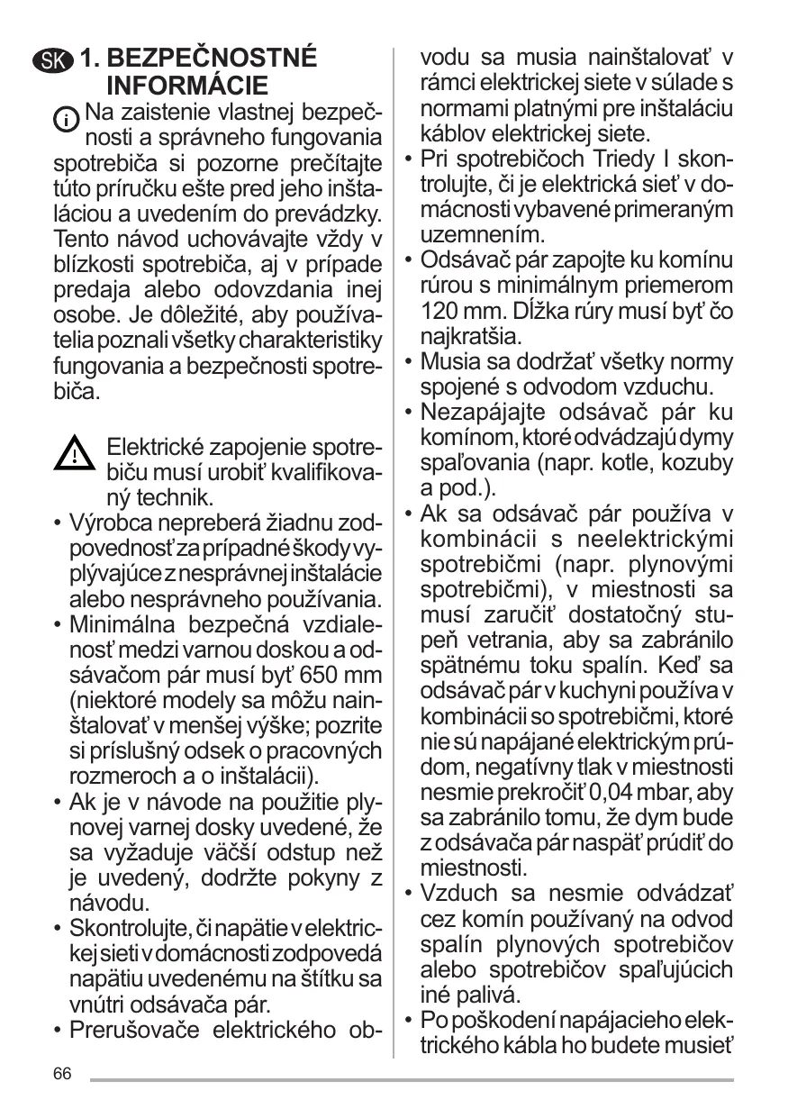 • De ruimte moet voldoende geventileerd zijn als de afzuigkap tegelijk met apparaten op gas of andere brandstoffen wordt gebruikt (niet van toepassing op