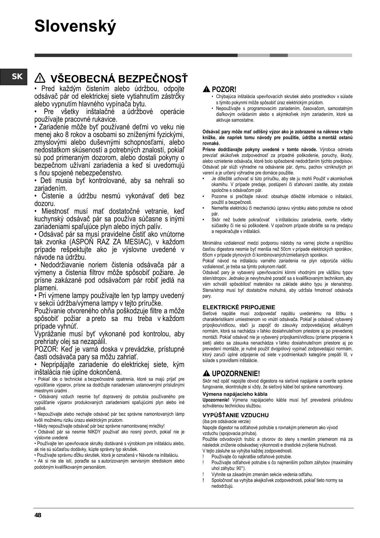 Pour utiliser la hotte dans cette version, vous devez installer un système de filtrage supplémentaire basé sur charbon actif.