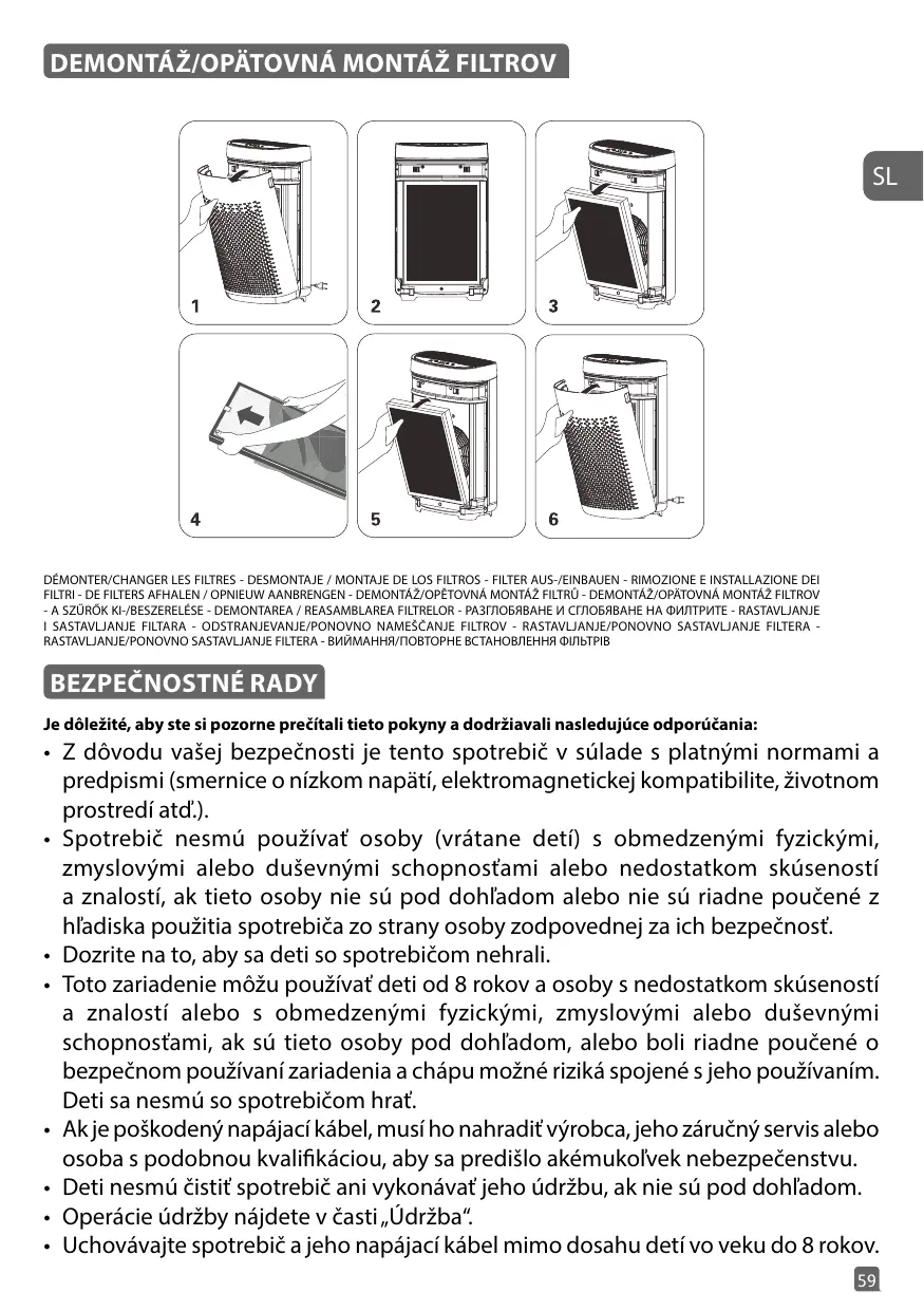 6 Indicateur de remplacement de filtre 7 Indicateur du minuteur 8 Indicateur de mode veille 9 Minuteur sélectionné 10 Vitesse sélectionnée • Pour votre sécurité, cet appareil est conforme aux normes et réglementations en vigueur (basse tension, compatibilité électromagnétique, directives environnementales, etc.). • Cet appareil ne doit pas être utilisé par des personnes (y compris les enfants) ayant des capacités physiques, sensorielles ou mentales réduites, ou un manque d'expérience et de connaissances, à moins qu'elles ne soient encadrées ou qu'elles n'aient reçu au préalable des instructions quant à son utilisation par une personne responsable de leur sécurité. • Les enfants doivent être surveillés pour s’assurer qu’ils ne jouent pas avec l’appareil. • L'appareil peut être utilisé par des enfants âgés de 8 ans et plus et des personnes manquant d'expérience ou de connaissances ou ayant des capacités physiques, sensorielles ou mentales réduites, à condition qu'elles soient encadrées, qu'elles aient appris à utiliser l'appareil en toute sécurité et qu'elles soient conscientes des risques encourus. Les enfants ne doivent pas jouer avec l’appareil. • Si le câble d’alimentation est endommagé, il doit être remplacé par le fabricant, son service après-vente ou des personnes de qualification similaire afin d’éviter tout danger. • Les enfants ne doivent pas nettoyer l'appareil ni effectuer d'entretien sans être surveillés. • Pour les opérations d'entretien, veuillez consulter la section « Entretien ». • Conservez l’appareil et son câble d’alimentation hors de portée des enfants âgés de moins de 8 ans. 10