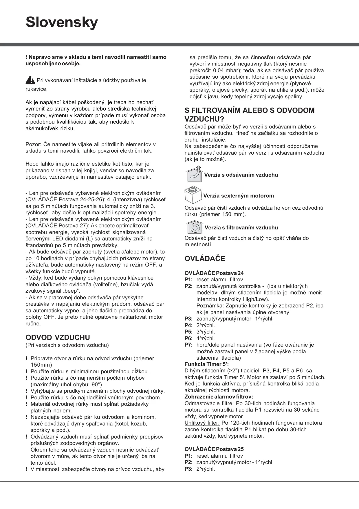 ! Odvádzány vzduch musí spínat podmienky predpisov príslušných zodpovedních organov.