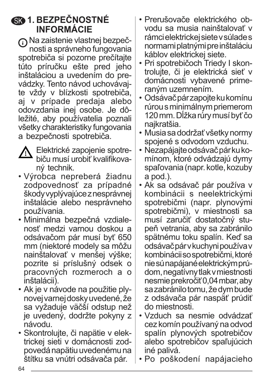 1. VARNOSTNE INFORMACIJE Zaradi lastne varnosti in za pravilno delovanje naprave priporočamo, da pred namestitvijo in prvo uporabo pozorno preberete ta priročnik. Ta navodila vedno shranjujte skupaj z napravo, tudi v primeru, da jo odstopite ali predate tretji osebi.