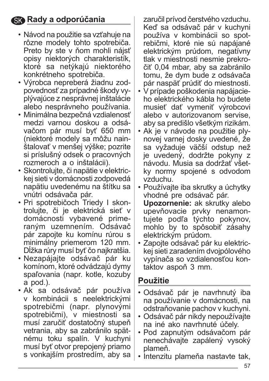 Ne pas relier la hotte aspirante aux conduits de cheminée qui ache- minent les fumées de combustion