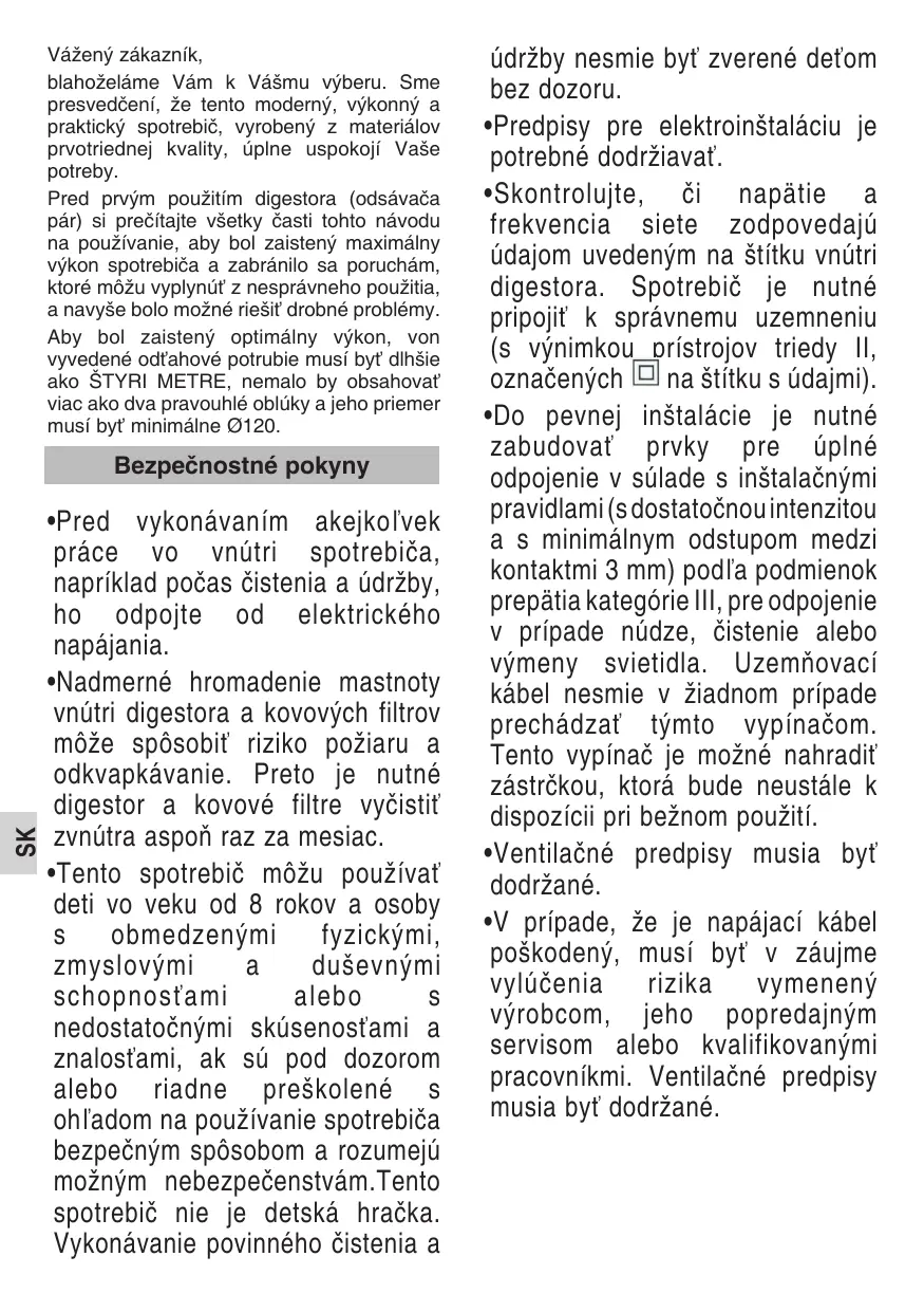 •Évitez de cuisiner sous la hotte sans les filtres métalliques, par exemple pendant qu’ils sont lavés dans le lave-vaisselle.