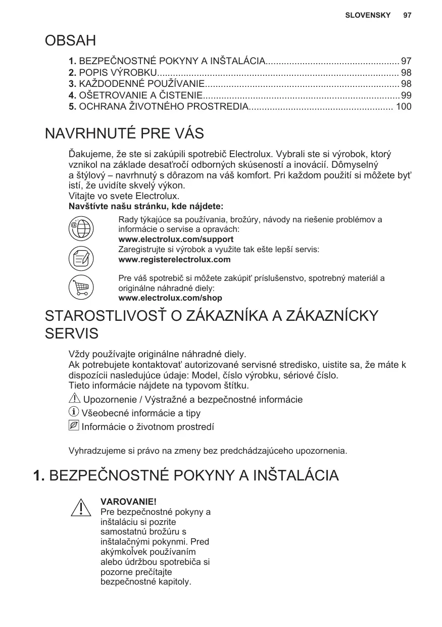 NÁVOD NA OBSLUHU EFP126X ELECTROLUX