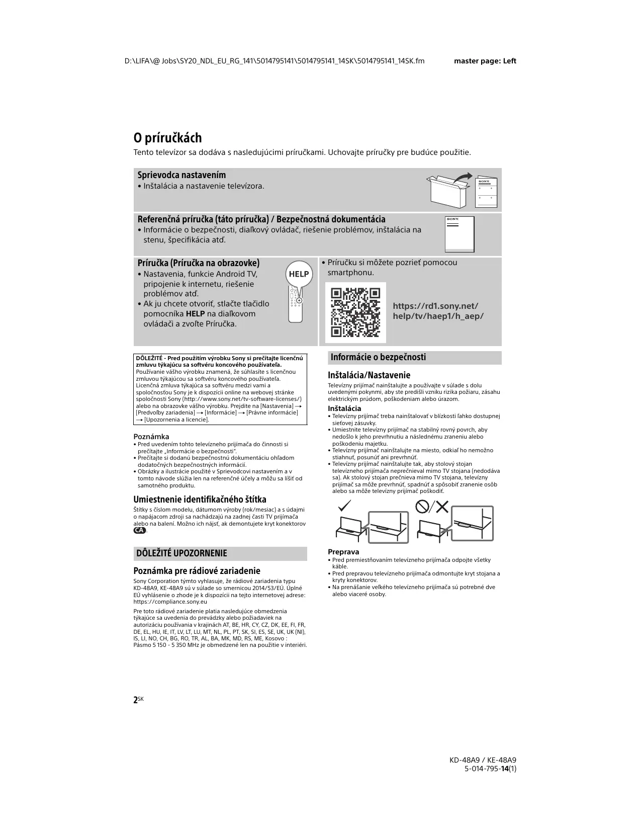 NÁVOD NA OBSLUHU KE48A9 SONY