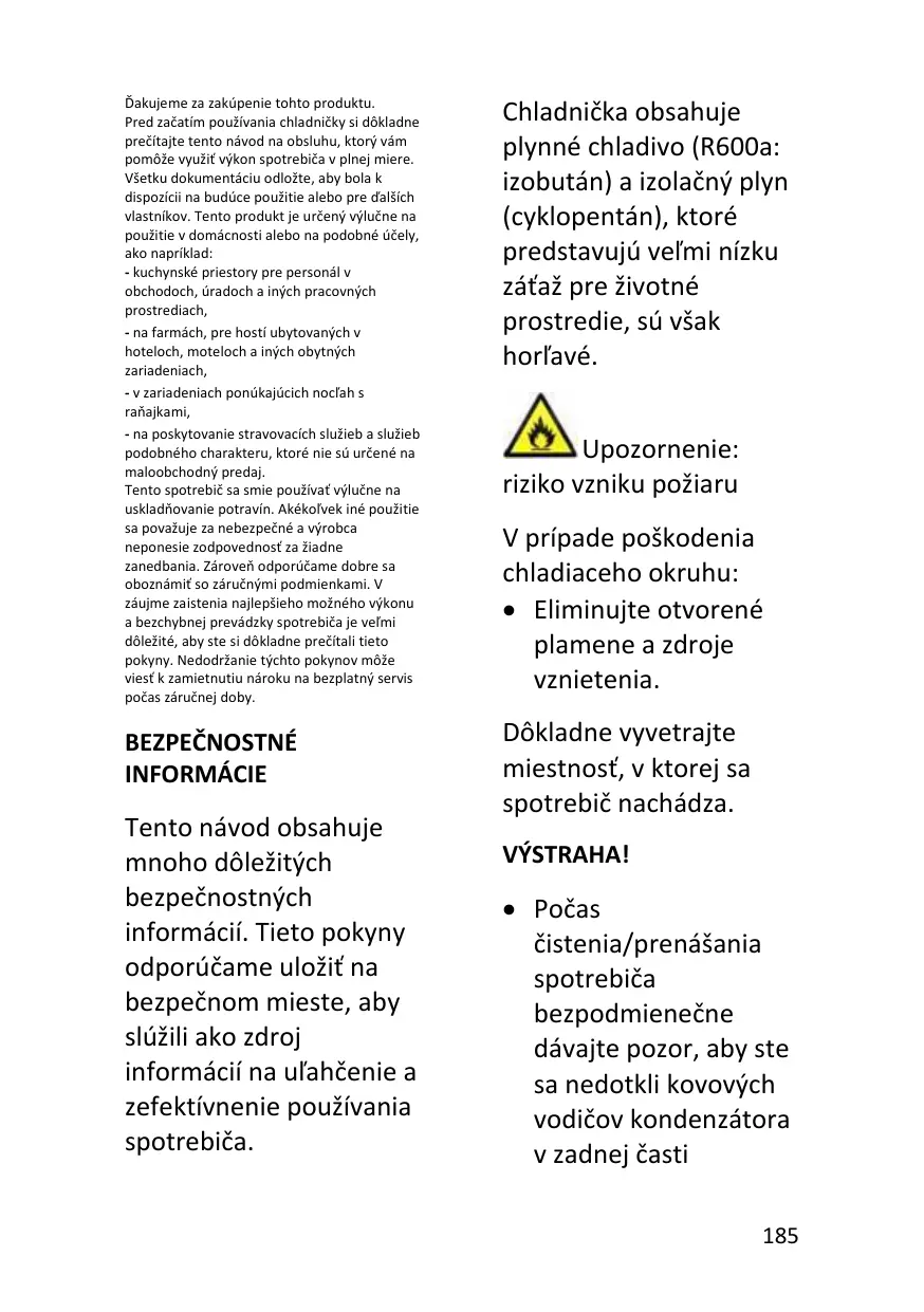 • Ne pas utiliser de dispositifs mécaniques ou d'autre équipement pour accélérer le processus de dégivrage. • Éviter impérativement l'utilisation de flamme nue ou d’un équipement électrique, comme des radiateurs, des nettoyeurs à vapeur, des bougies, des lampes à pétrole ou similaires pour accélérer la phase de dégivrage.