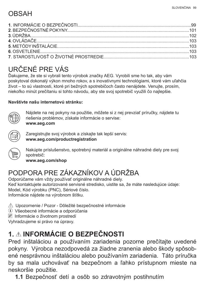 Lorsque vous contactez le Service Après-Vente agréé, munissez-vous des données suivantes : Modèle, Code produit (PNC), Numéro de série. Les informations se trouvent sur la plaque des données. Avertissement / Attention – Informations importantes pour la sécurité Conseils et suggestions Informations sur l’environnement Sous réserve de modifications.