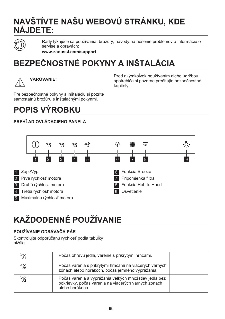 NÁVOD NA OBSLUHU ZFV916Y ZANUSSI