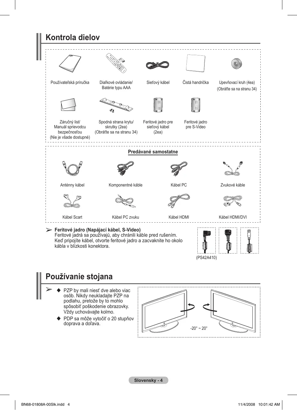 Pokyny pre používateľa 2 Kontrola dielov 4 Používanie stojana 4 Ovládací panel 5 Connection Panel 6 Zobrazenie diaľkového ovládania 8