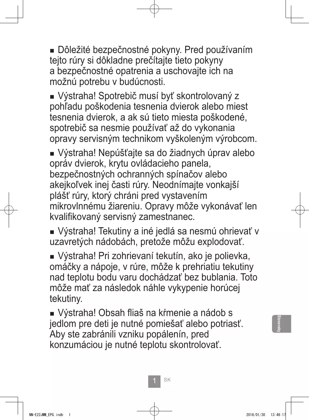 Téléchargez la notice de votre Mikrovlnné rúry au format PDF gratuitement ! Retrouvez votre notice NN-E20JWMEPG - PANASONIC et reprennez votre appareil électronique en main. Sur cette page sont publiés tous les documents nécessaires à l'utilisation de votre appareil NN-E20JWMEPG de la marque PANASONIC.