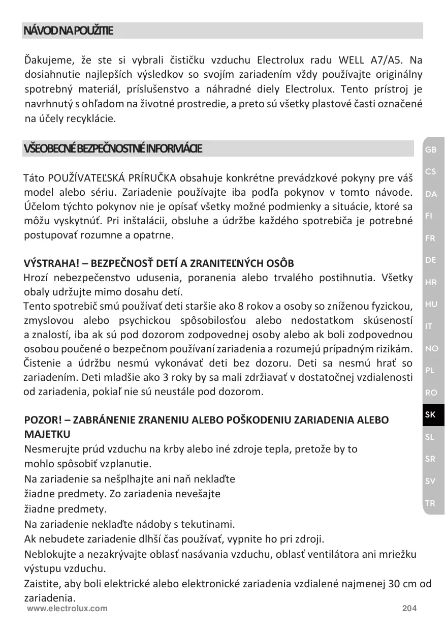 NÁVOD NA OBSLUHU WA71-304DG ELECTROLUX