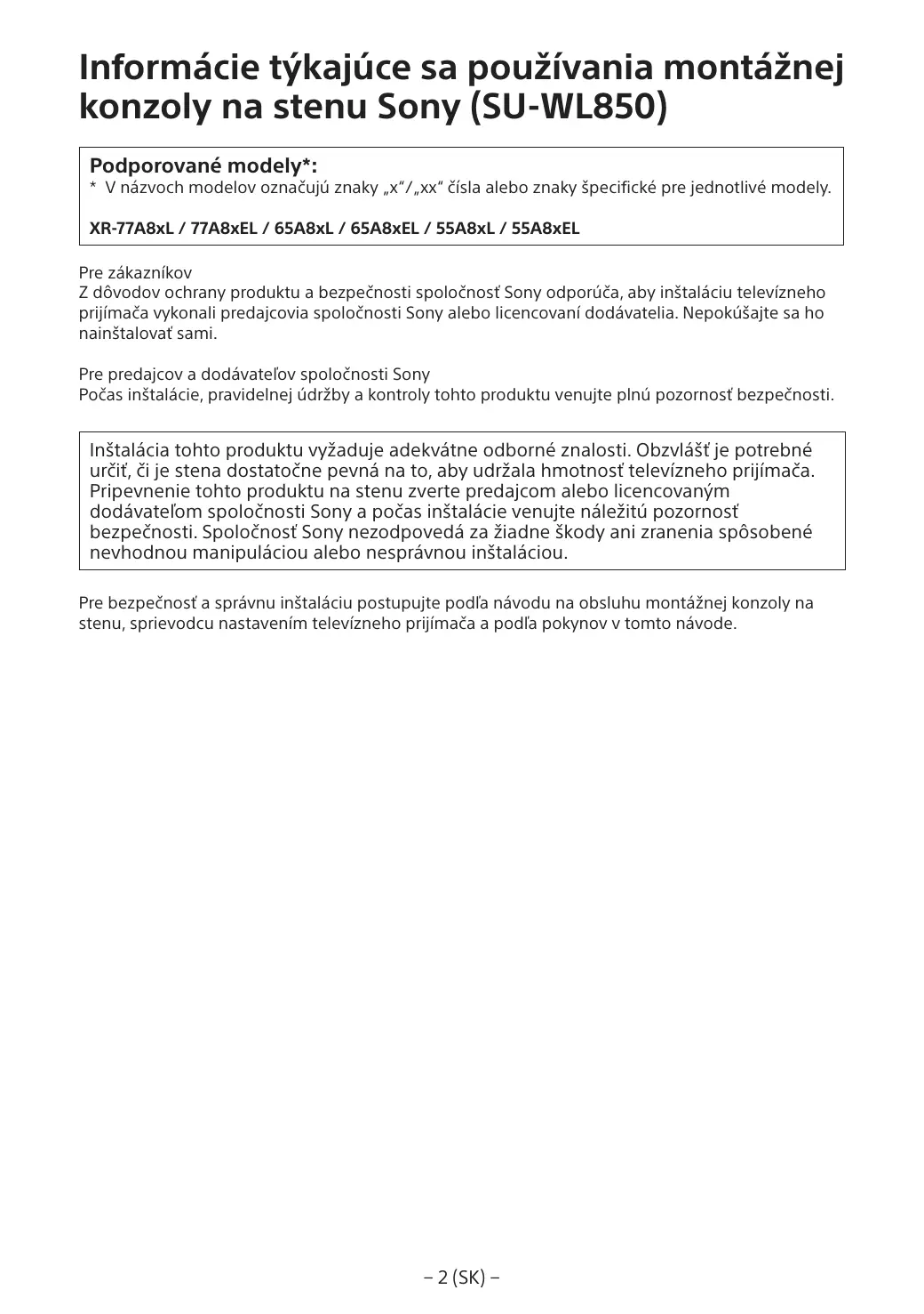 NÁVOD NA OBSLUHU LCDXR-65A80L SONY