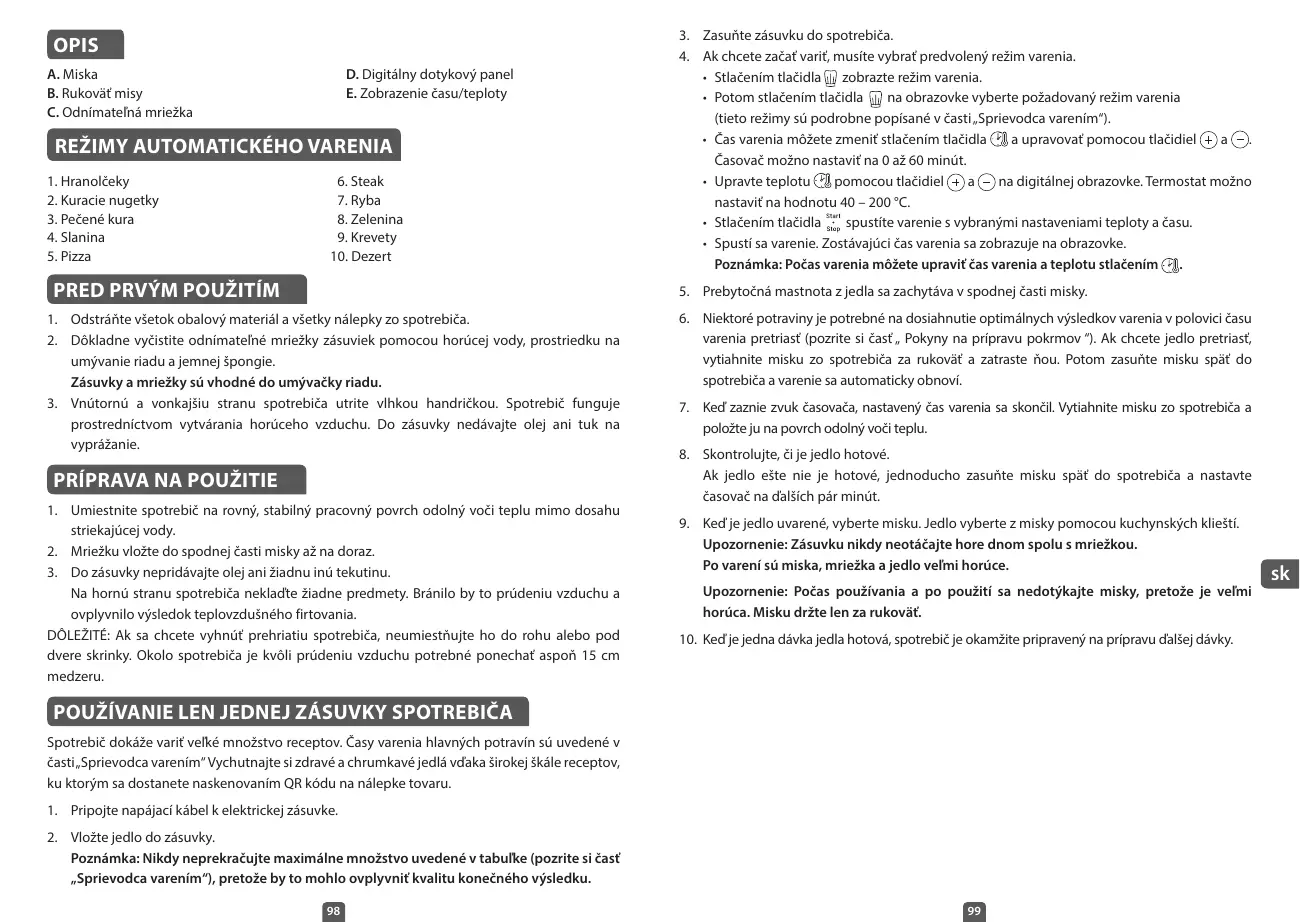 MODE D’EMPLOI DE L’APPAREIL L’appareil permet de cuire une vaste gamme de recettes. Les temps de cuisson pour les principaux ingrédients sont indiqués dans la section « Réglages ». Savourez des plats sains et croustillants grâce à notre grande variété de recettes en flashant le code QR sur le sticker du produit.