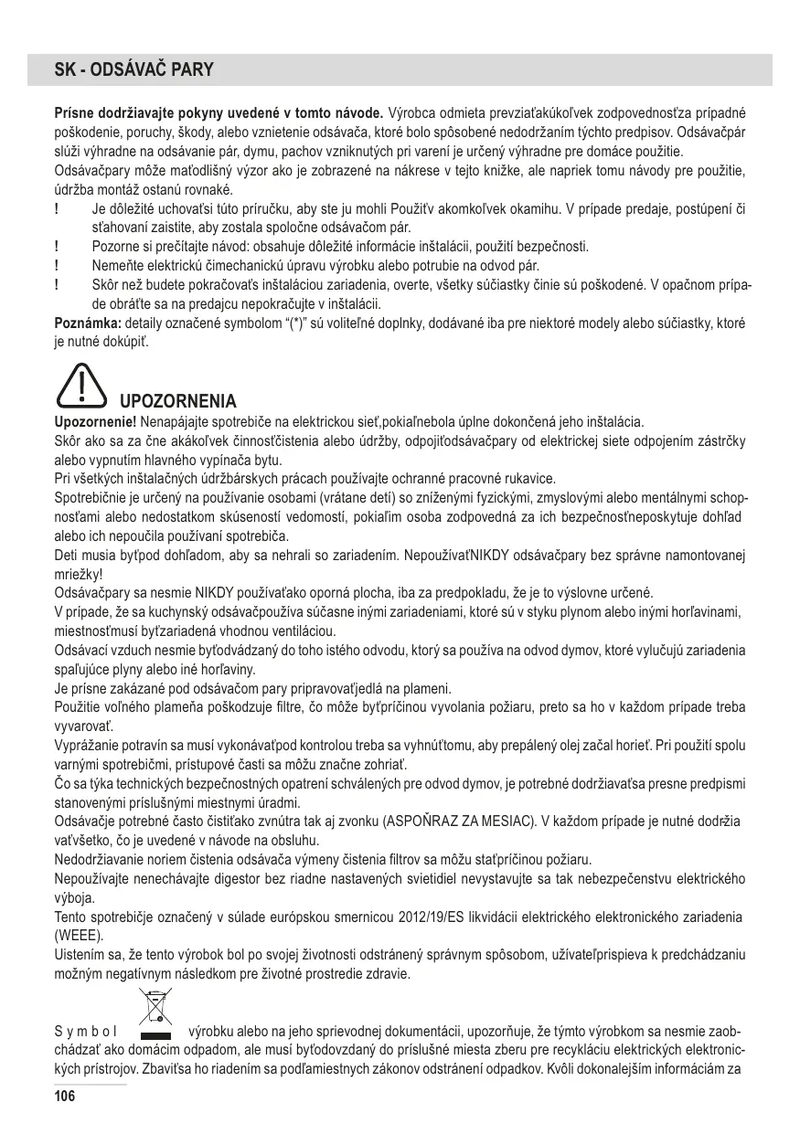 • Sécurité : EN/CEI 60335-1; EN/CEI 60335-2-31, EN/CEI 62233. ATTENTION! Ne pas installer les vis et les éléments de fixation conformément à ces instructions peut entraîner des risques électriques.