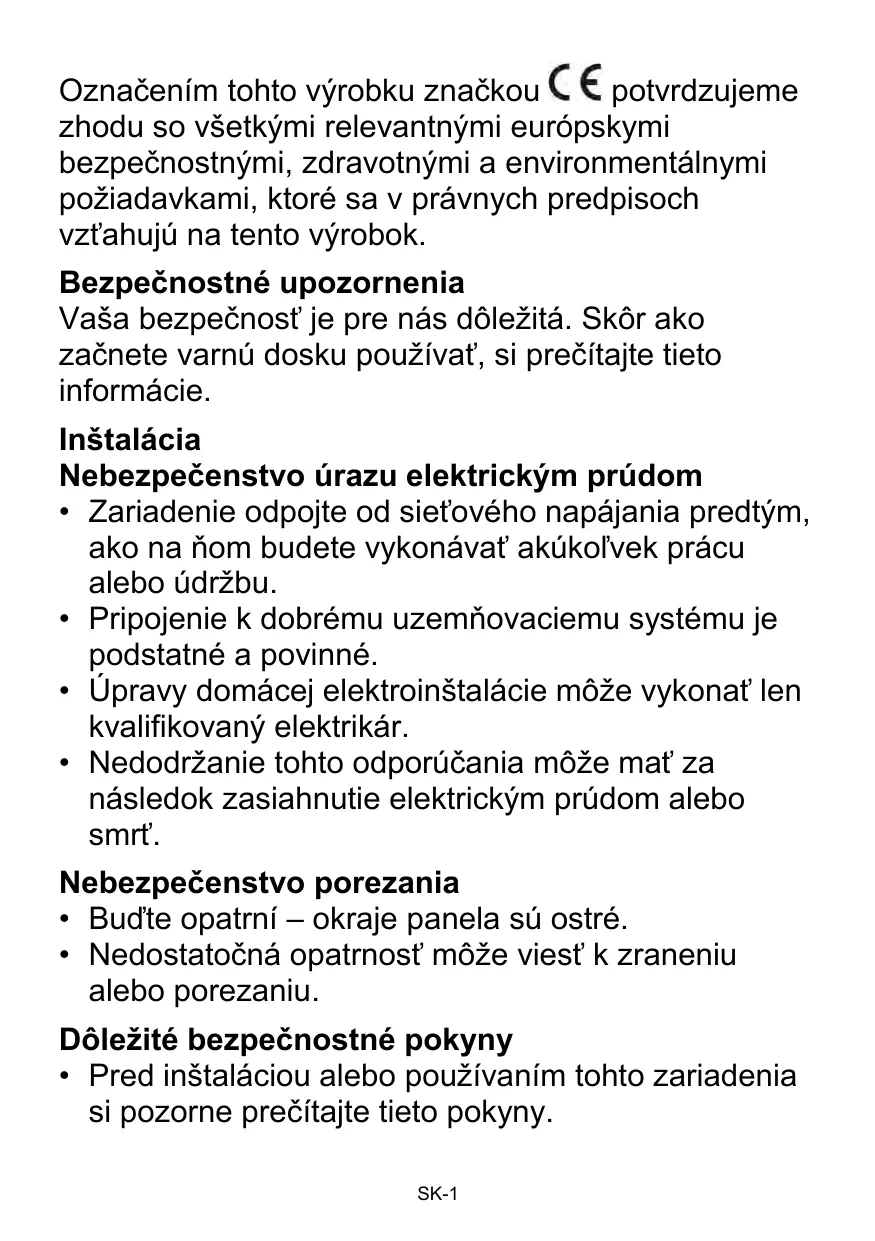 CE Norme appliquée : EN 60350-2 pour les appareils de cuisson électriques à usage domestique - Partie 2