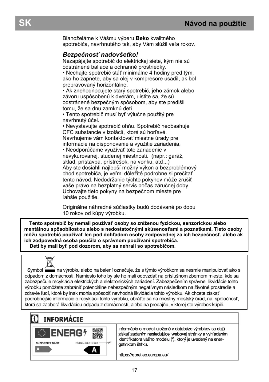NÁVOD NA OBSLUHU RCSA270K30XBN BEKO