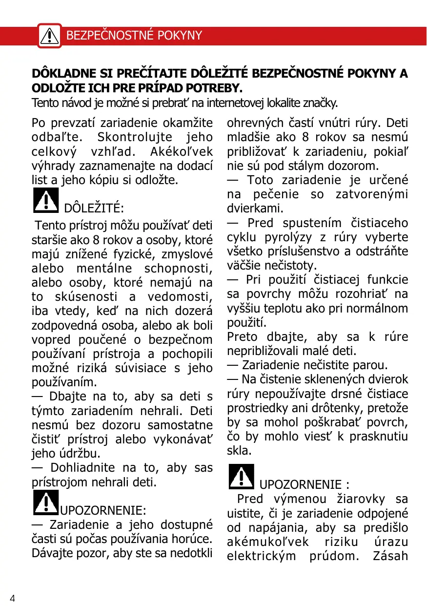 * Avant de procéder à un net- toyage pyrolyse de votre four, reti- rez tous les accessoires et enlevez les éclaboussures importantes.