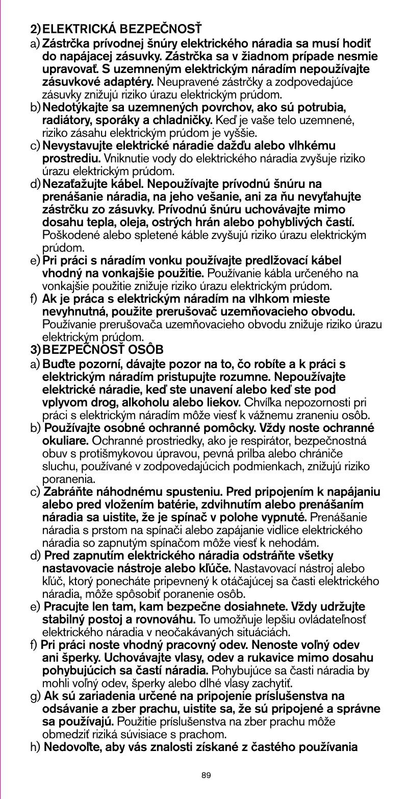 g)Utilisez l'outil électroportatif, les accessoires, les forets, etc. conformément à ces instructions en tenant compte des conditions de travail et du travail à effectuer. L'utilisation des outils électroportatifs à d'autres fins que celles prévues peut créer des situations dangereuses.
