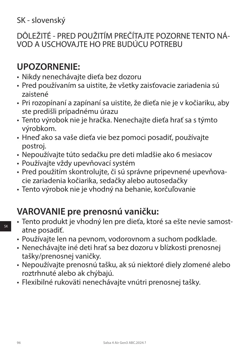 NÁVOD NA OBSLUHU SALSA 4 AIR ABC DESIGN