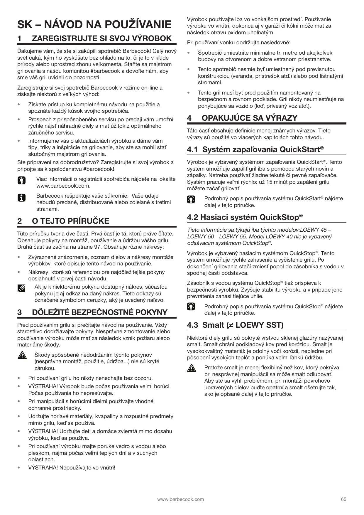 NÁVOD NA OBSLUHU LOEWY 40, LOEWY 45, LOEWY 50 / 50 SST, LOEWY 55 / 55 SST BARBECOOK
