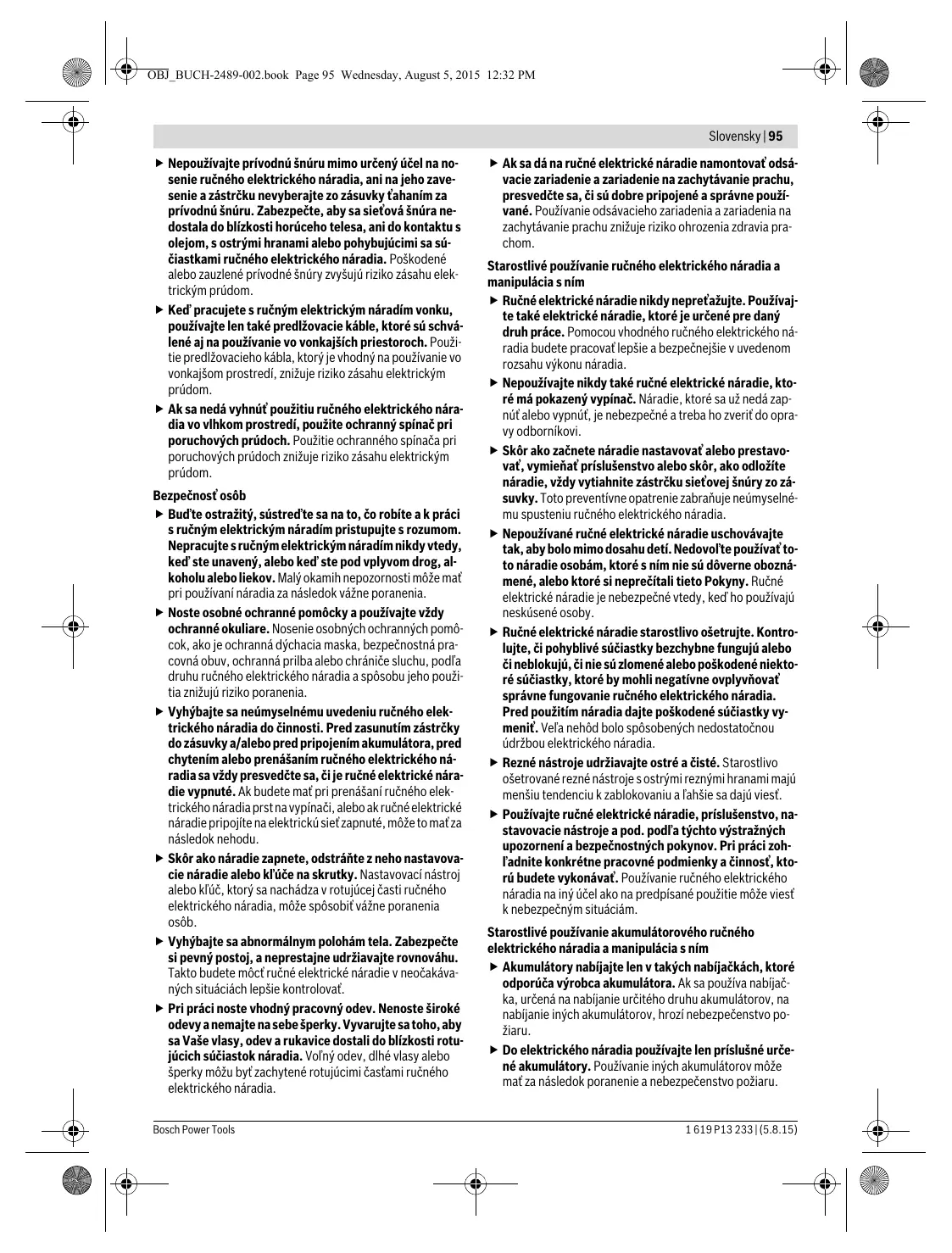 Leniveau d'oscillation correspond aux utilisations principales de l'outil électroportatif. Si l'outil électrique est néanmoins utilisé pour d'autres applications, avec différents accessoires ou d'autres outils de travail ou s'est mal entretenu, le niveau d'oscilation peut être différent, Ceci peut augmenter consi- dérablement la charge vibratoire pendant toute la durée de travail.