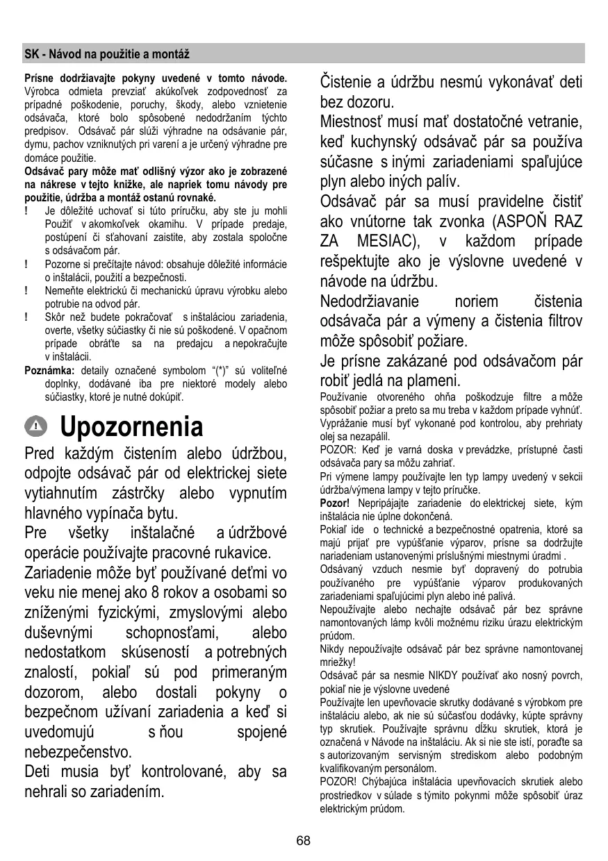 La hotte ne doit JAMAIS être uillsée comme une surface d'appui, sauf indication expresse.