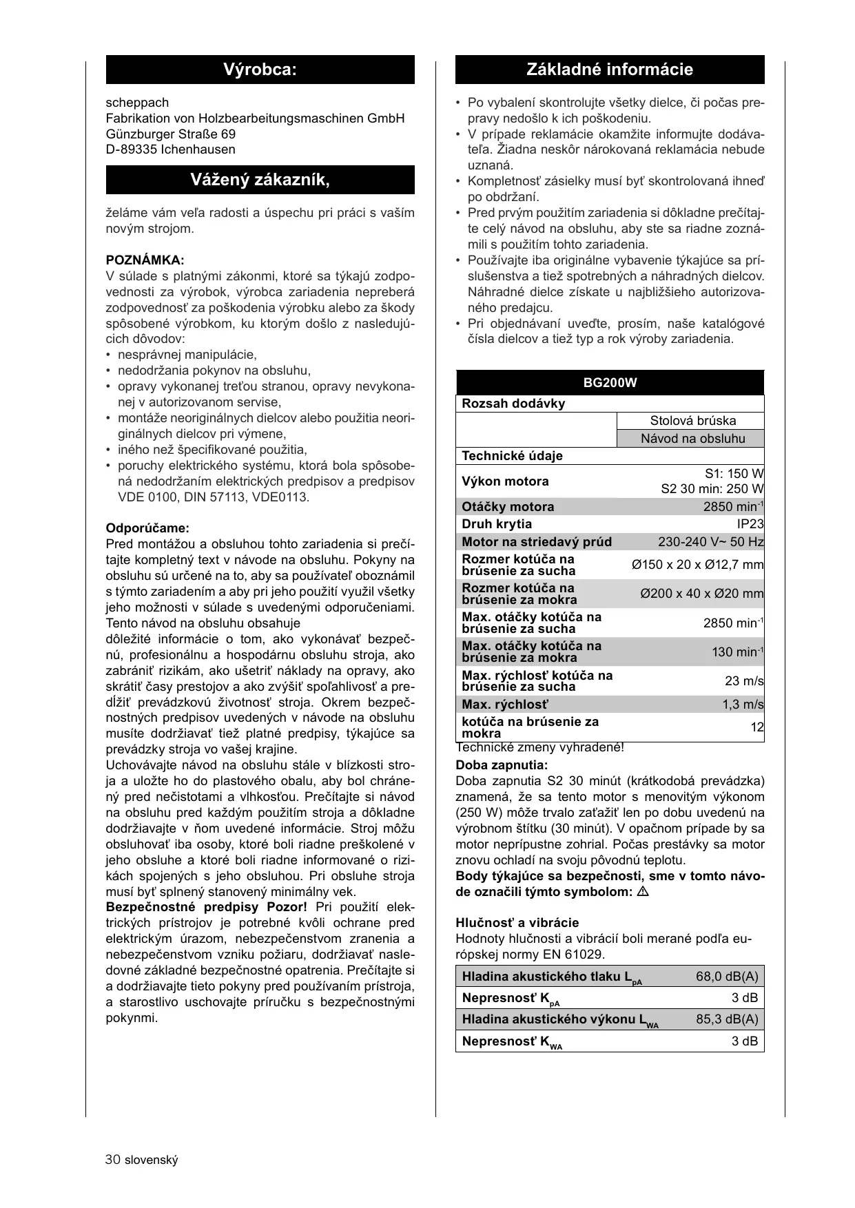 NÁVOD NA OBSLUHU BG200W SCHEPPACH